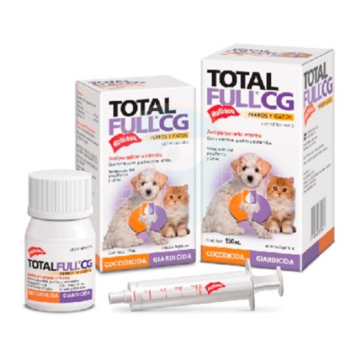 - TOTAL F CG Perros & Gatos: Coccidios: en base al toltrazuril, 20 mg/kg de peso (equivalentes a 1 ml de la suspensión oral por kgde peso). Dos tomas con un intervalo de 7 días. Giardias y nematodos: en base al fenbendazol, 50 mg/kg de peso (equivalentes a 1 ml de la suspensión oral por kg de peso).Una toma cada 24 hs durante tres días consecutivos. Para control de Ascaris y Ancylostoma, repetir entre 14 y 21 días, para Trichuris repetir a los 30 y 60 días. TOTAL F LC DOSIS: PERROS PEQ 1 TAB/5KG, PERROS MED 1TAB/ 10KG, PERROS GRA 1TAB /20 KG, GATOS 1TB/4KG